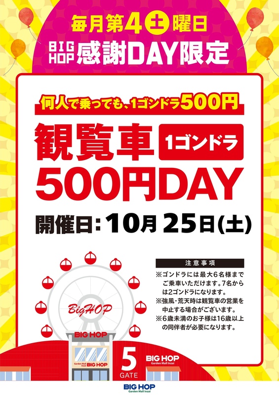 毎月第4土曜日は、観覧車がお得に乗れる1日!