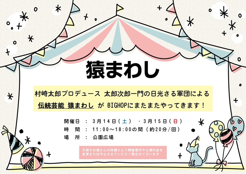 伝統芸能 猿まわし が BIGHOPにまたまたやってきます!