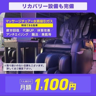 アッティーボジムはトレーニングはもちろん、リラクゼーション空間としてもお楽しみいただけます! 会員様は、月1,100円のオプション料金をお支払いいただくことで、水素ガス吸引とマッサージチェアをご利用いただけます! 🔹水素の効果🔹 ・抗酸化作用 ・アンチエイジング ・疲労回復 ・睡眠の質の改善 ・代謝アップ 様々な効果が期待できます🙌 日常的に疲労を感じている方や、ストレスを感じている方にオススメ😊 ぜひご利用くださいませ。